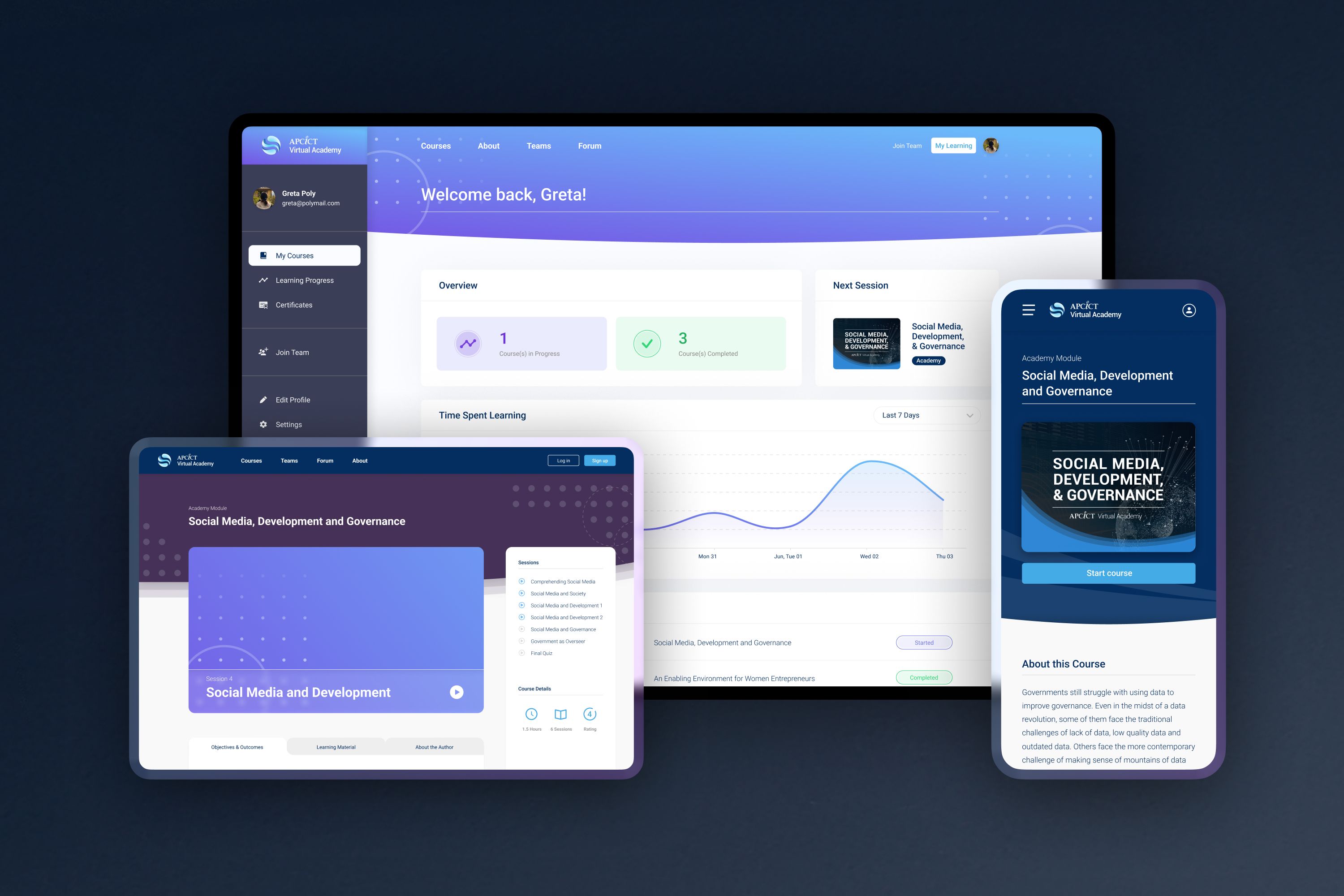 The APCICT Virtual Academy serves three distinct user groups with diverse needs and goals: government ministries, academic institutions, and women entrepreneurs from the private sector. Thus, the core UX challenge behind this project was to design a unified online platform that responds to the different learning requirements of each target group while still maintaining an overall cohesive website experience. To solve this challenge, the platform was designed to support multiple user journeys, enabling learners to engage with course content in ways that reflect their individual needs.