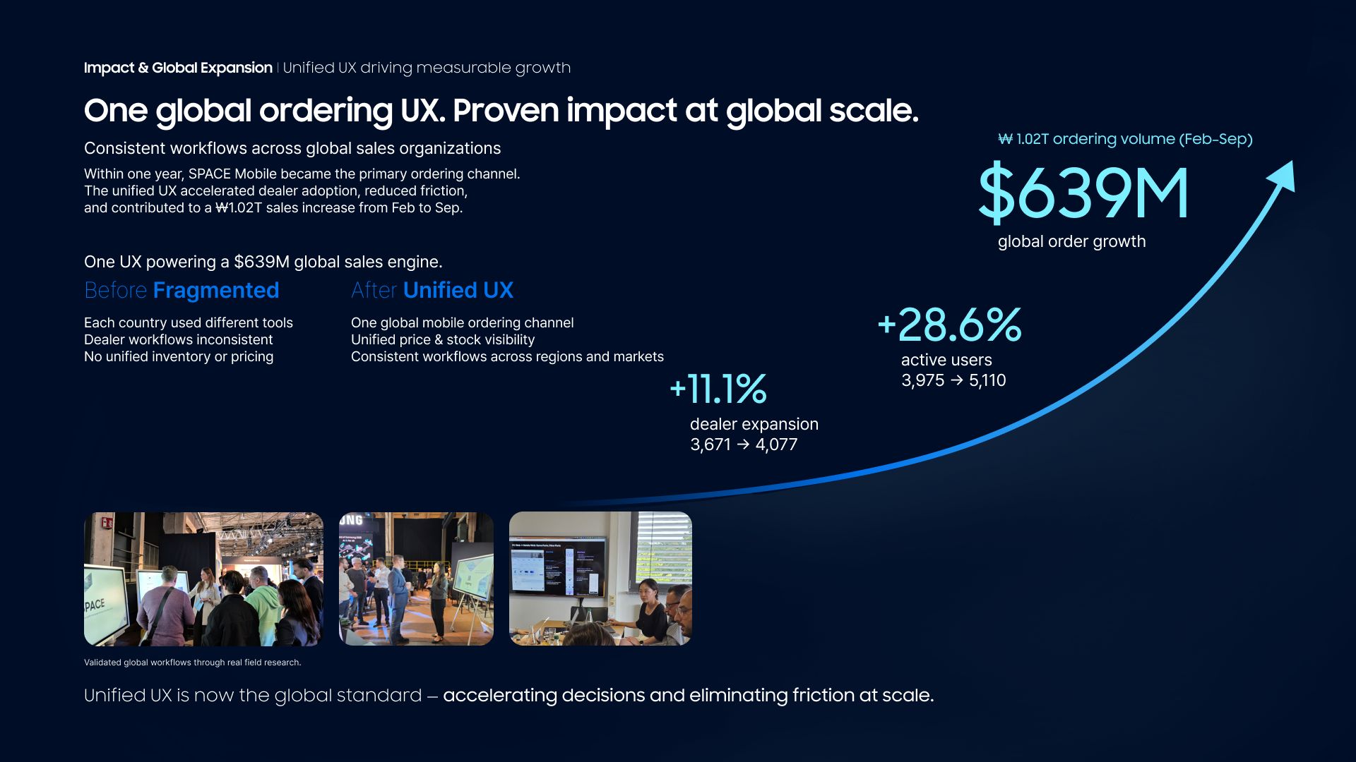 In five years, I see this platform becoming a fully AI-driven global sales hub that supports every stage of the customer journey. What we built is more than a mobile app; it is the foundation for how Samsung’s worldwide sales teams will operate with speed and clarity. I hope to continue leading large-scale UX transformations, using evidence-based research and structural problem-solving to simplify complex enterprise systems. This project is a blueprint for global UX integration, and I aim to expand its impact across more regions and industries.