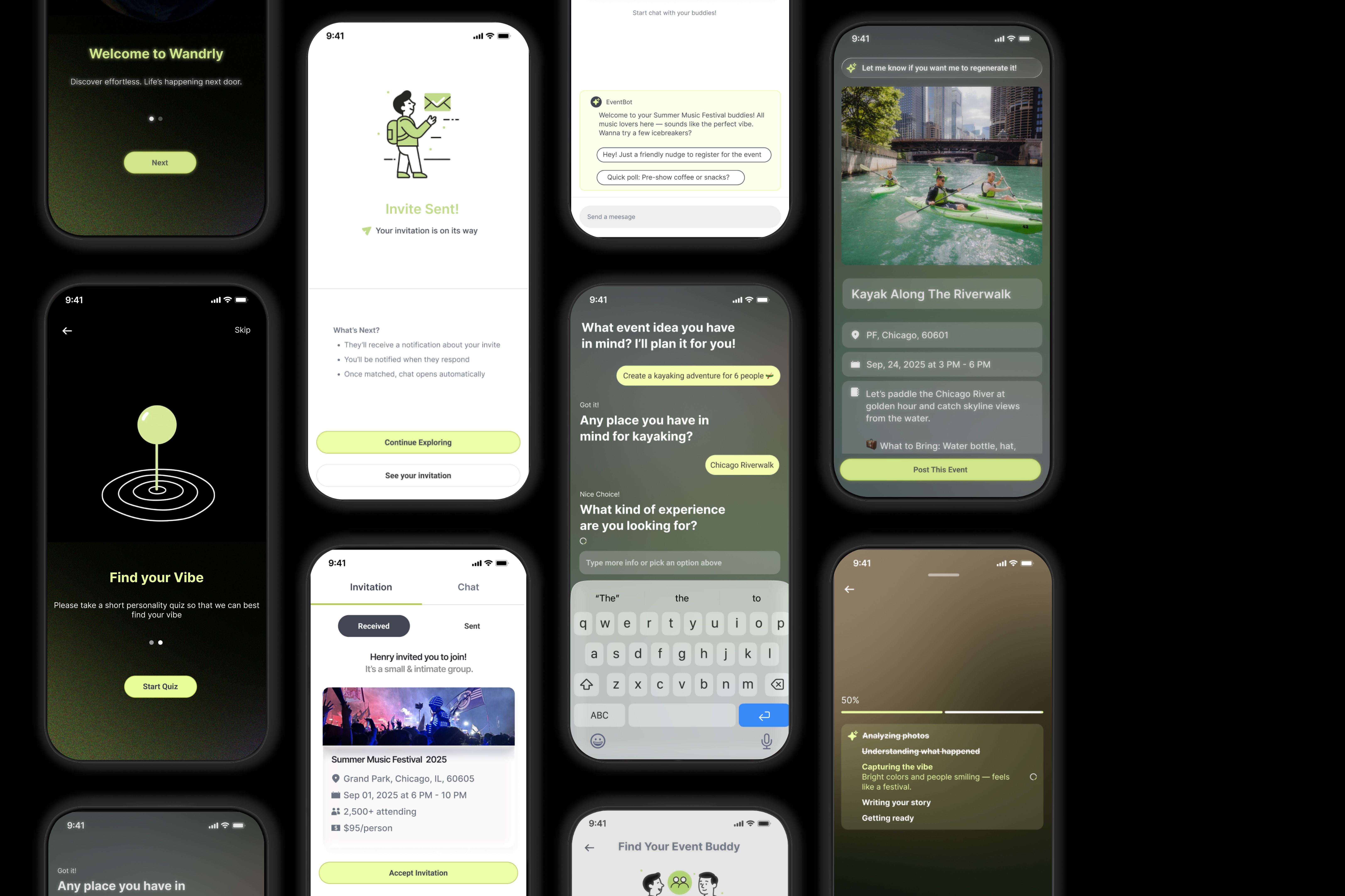The core UX challenge of Wandrly was designing an AI-powered social platform that supports meaningful human connection without increasing cognitive load or replacing authentic interaction. Social planning involves emotional vulnerability, trust, and coordination across multiple people, contexts, and timeframes. From a UX perspective, the difficulty lay in balancing proactive AI assistance with user agency, reducing choice overload while preserving serendipity, and creating memory-aware experiences that evolve without feeling intrusive or repetitive. This required designing transparent, context-aware interaction flows where AI intent, timing, and influence were always understandable to users.